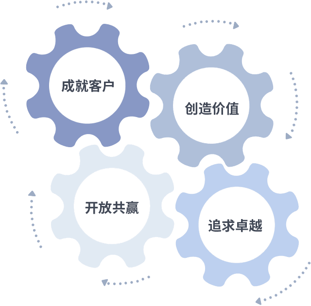 成就客户是一切决策的出发点,创造价值是衡量所有工作的标准,追求卓越是大庄家做事做人的态度,开放共赢是大庄家的格局也是最终的结果。价值观的齿轮环环相扣,推动着组织里的每个人不断向前。